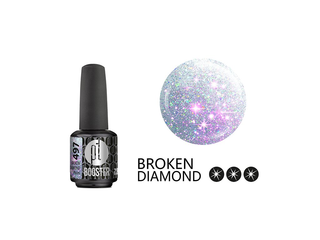 BOOSTER Color Broken Diamond je možné aplikovat jak na barevný podklad, tak samostatně jako barevnou vrstvu. V případě aplikace bez podkladové barvy nanášejte ve 2 vrstvách. Každou vrstvu vytvrďte 30 sekund v LED lampě nebo 2 minuty v UV lampě.Lahvičku před použitím řádně protřepejte.