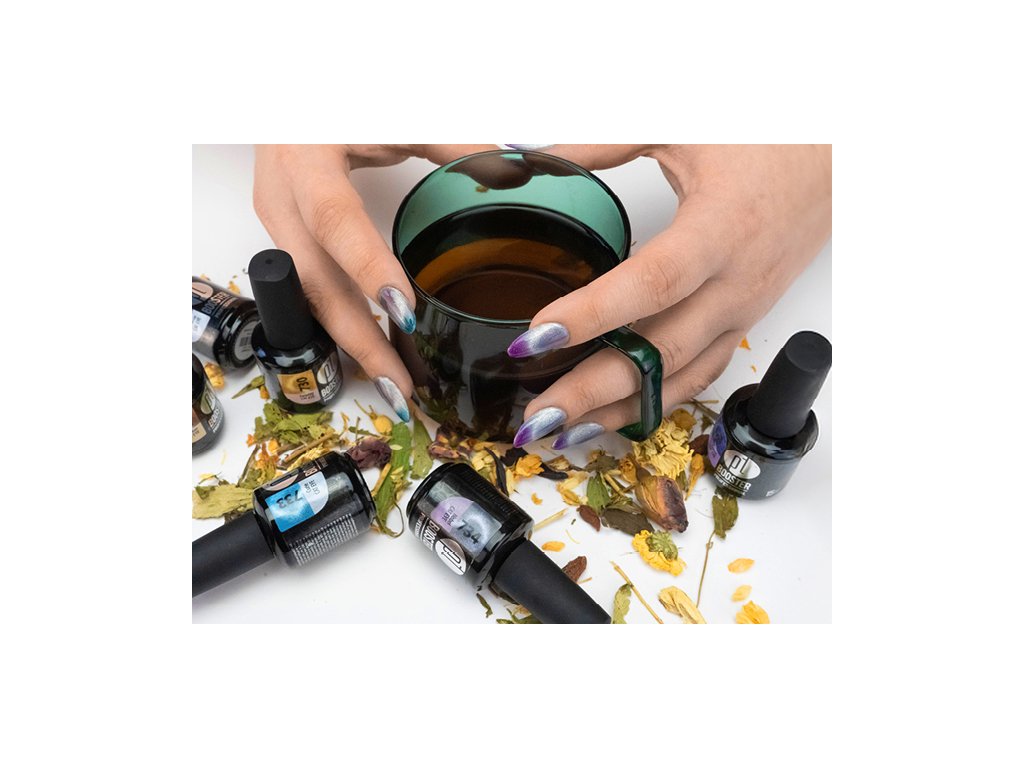 6 gel-laků s cat eye efektem mění díky speciálním termochromním pigmentům barvu podle teploty a tvoří tím kouzelné efekty.